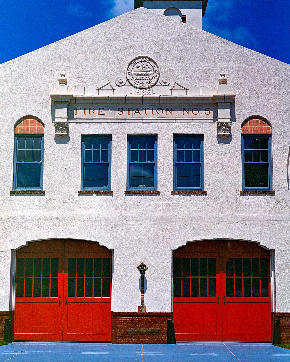 I was driving by this place during errands and had my camera with me and the striking red doors of the fire station caught my eye. The contrast to the white paint and the blue sky makes for a pleasing image.