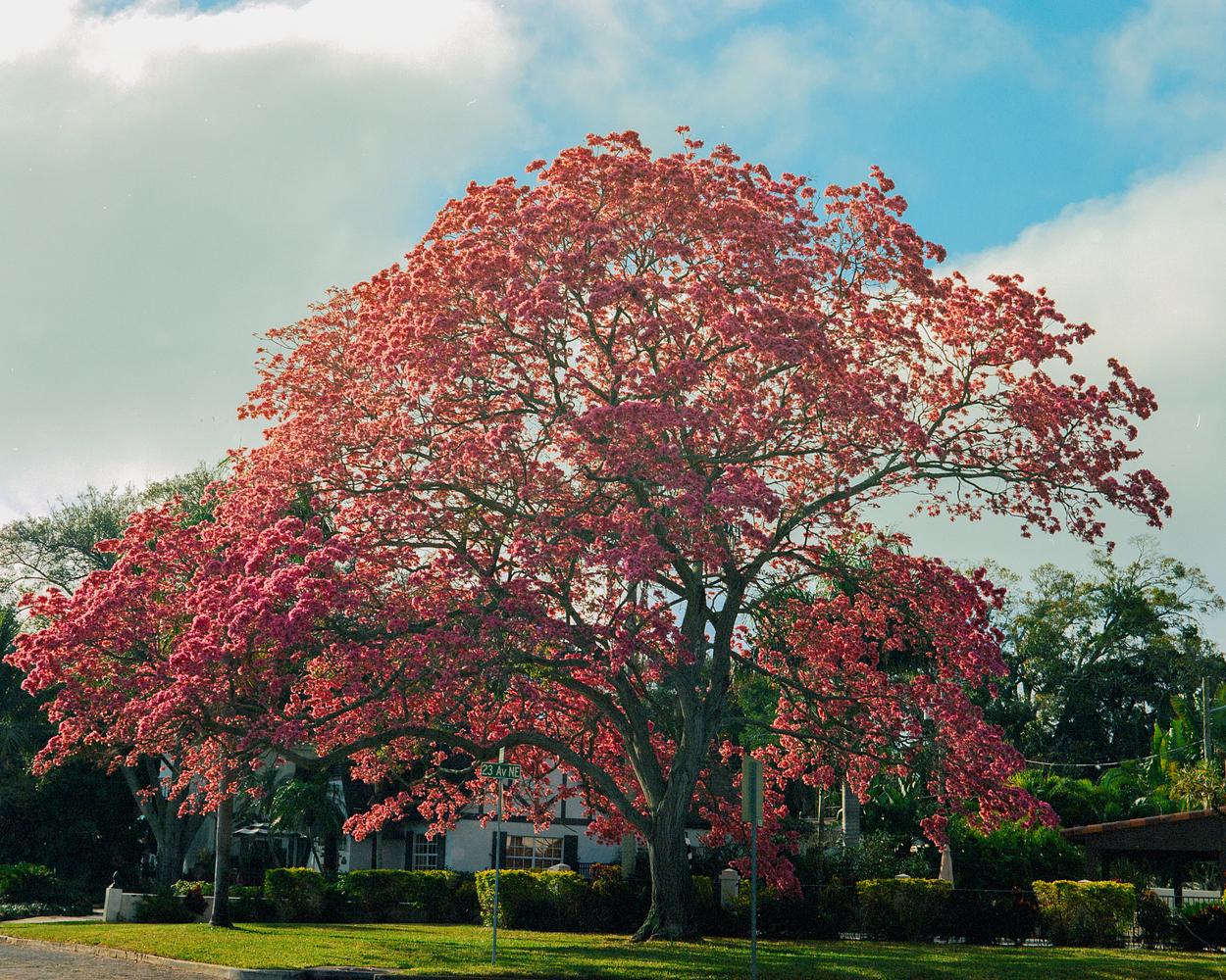 Over in St. Pete Florida off of Coffee Pot Dr. There is a massive pink trumpet tree that explodes in pink blooms every year. Shot with a Pentax 67 medium format camera with. 105mm lens on Kodak Vision 3 250D film.