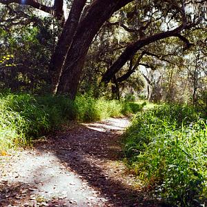 Taken at Circle Bar B Preserve in Lakeland, Florida. A lot of the trails there are shaded with beautiful oak trees. I really liked how the light was filtering down thru the trees down to the path here. Shot on a Bronica EC-TL II with a 75mm f/2.8 lens on Kodak Gold 200.
